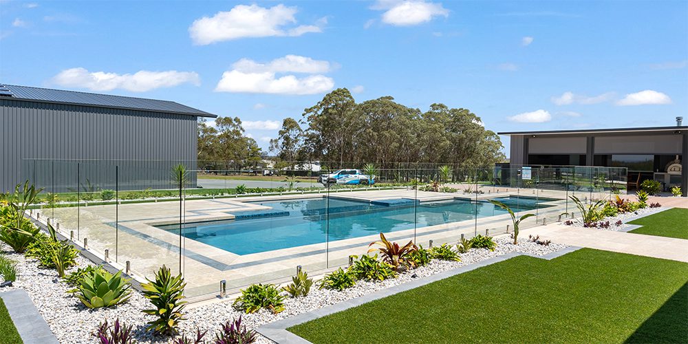 Ensure that the hardscaping materials are slip-resistant and can withstand the pool chemicals and frequent water exposure.